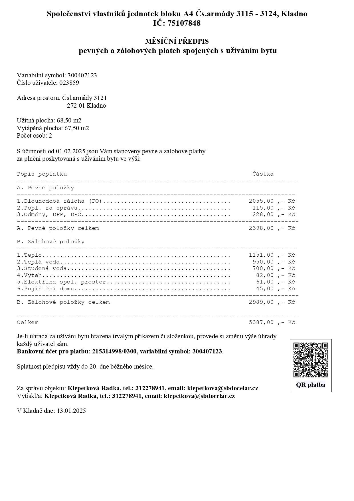 Velikost bytu: 68 m2 + komora naproti bytu 1 m2.