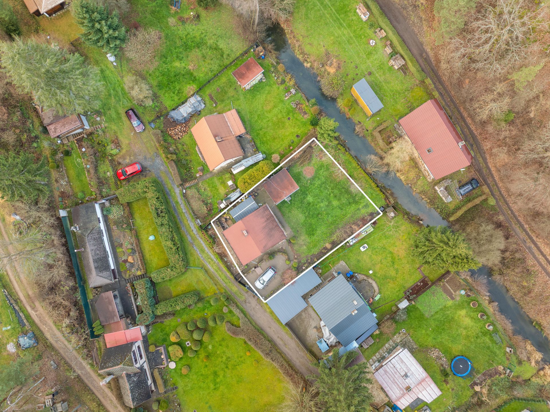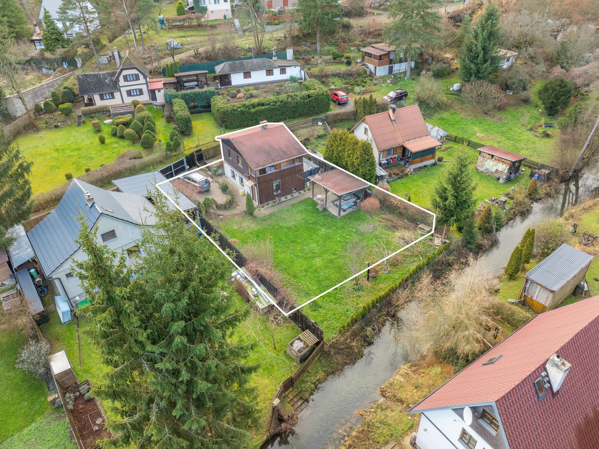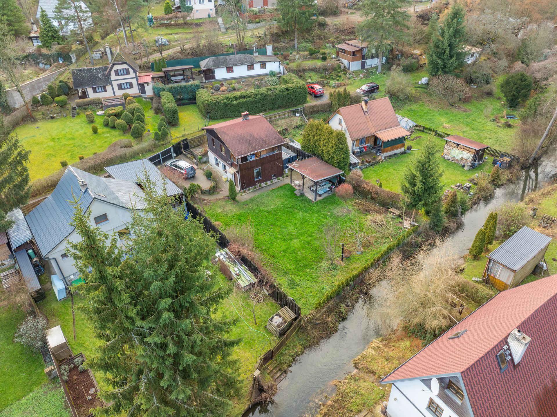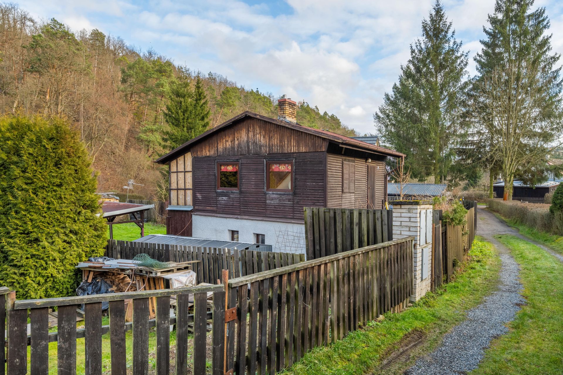 Na zahradě je postaven přístřešek, který určitě využijete třeba při letním grilování. Za chatou je také plechový sklad, kde schováte spoustu věcí.