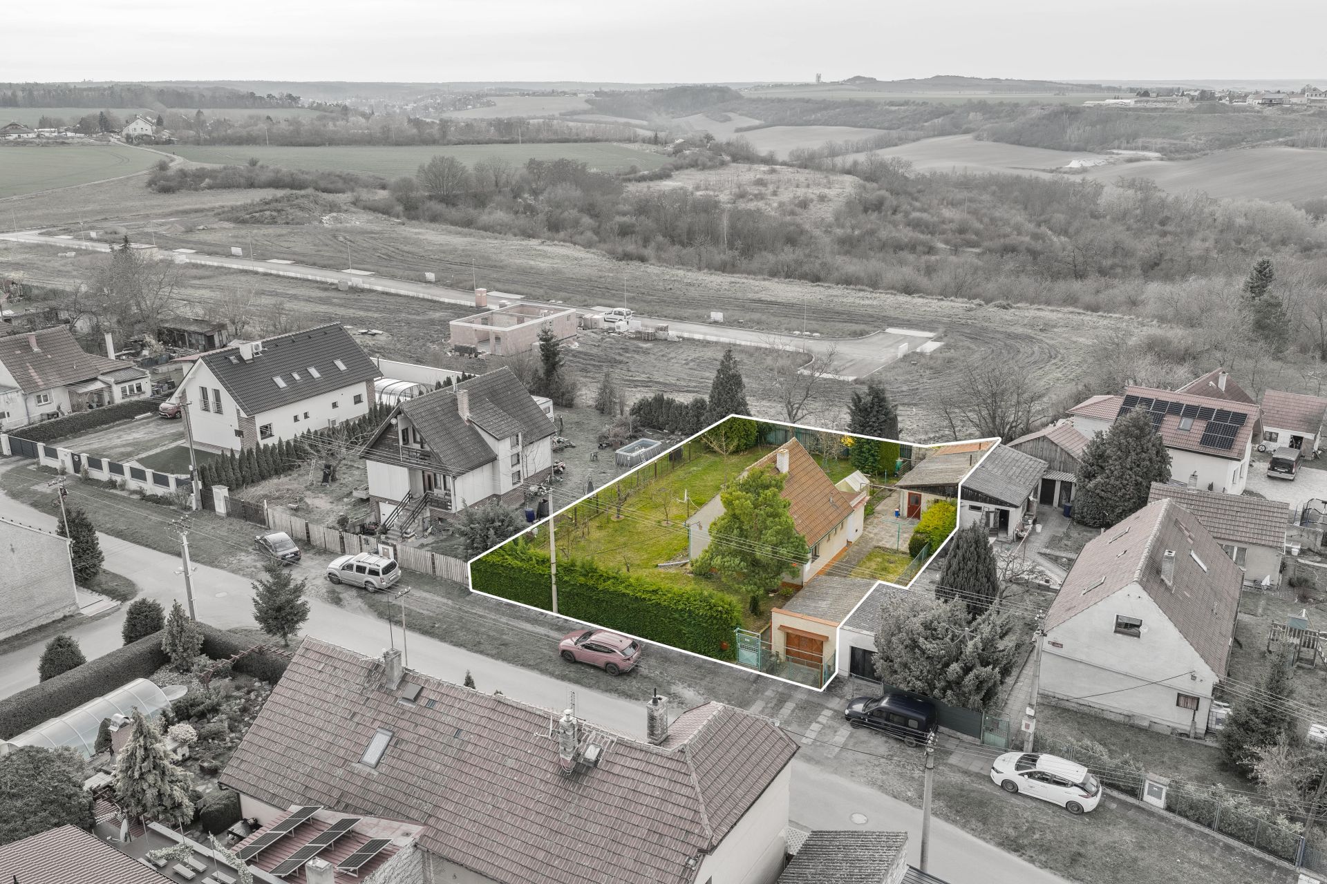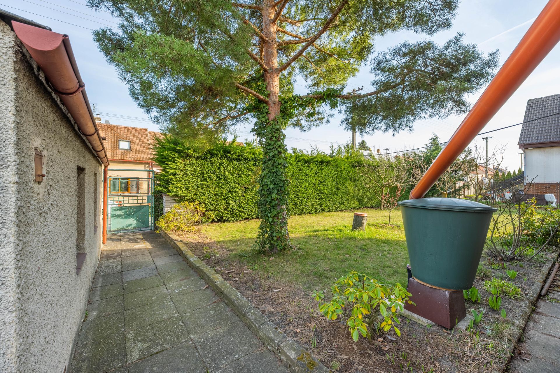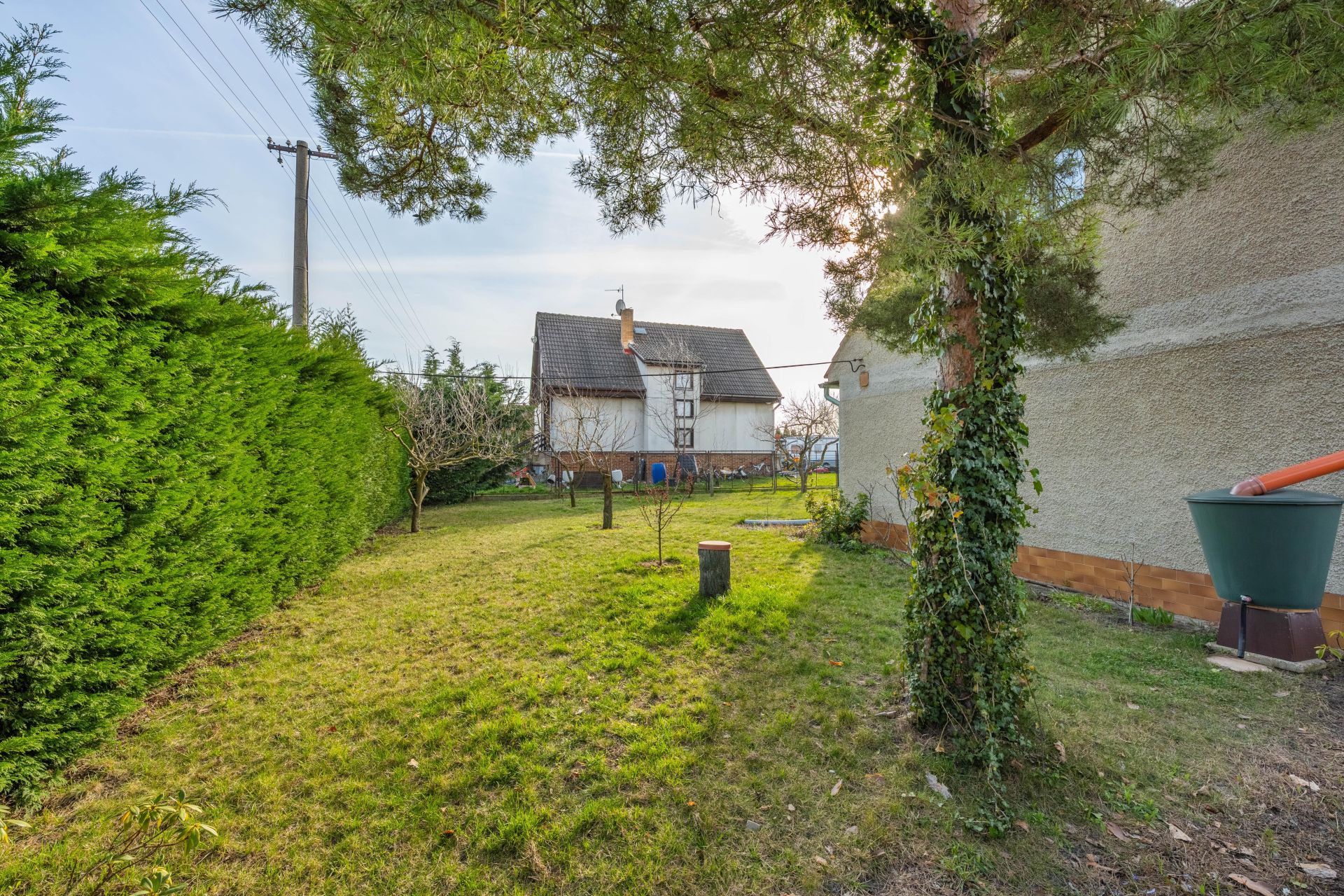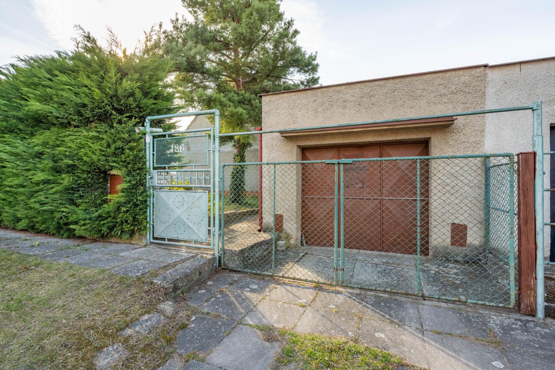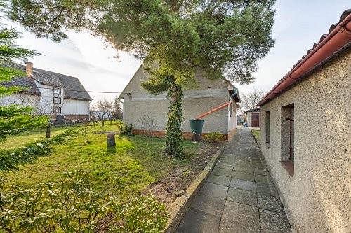 Příjezd k domu je po asfaltové komunikaci, U plotu z ulice jsou vzrostlé tůje, které zajišťují plné soukromí na zahradě.