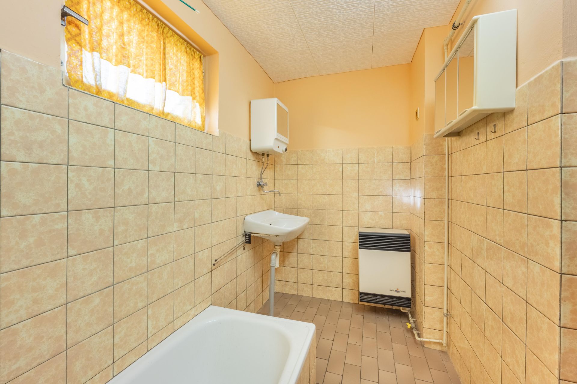 Vytápění je v současné době zajištěno elektrickými přímotopy, v koupelně pak plynovým topením.