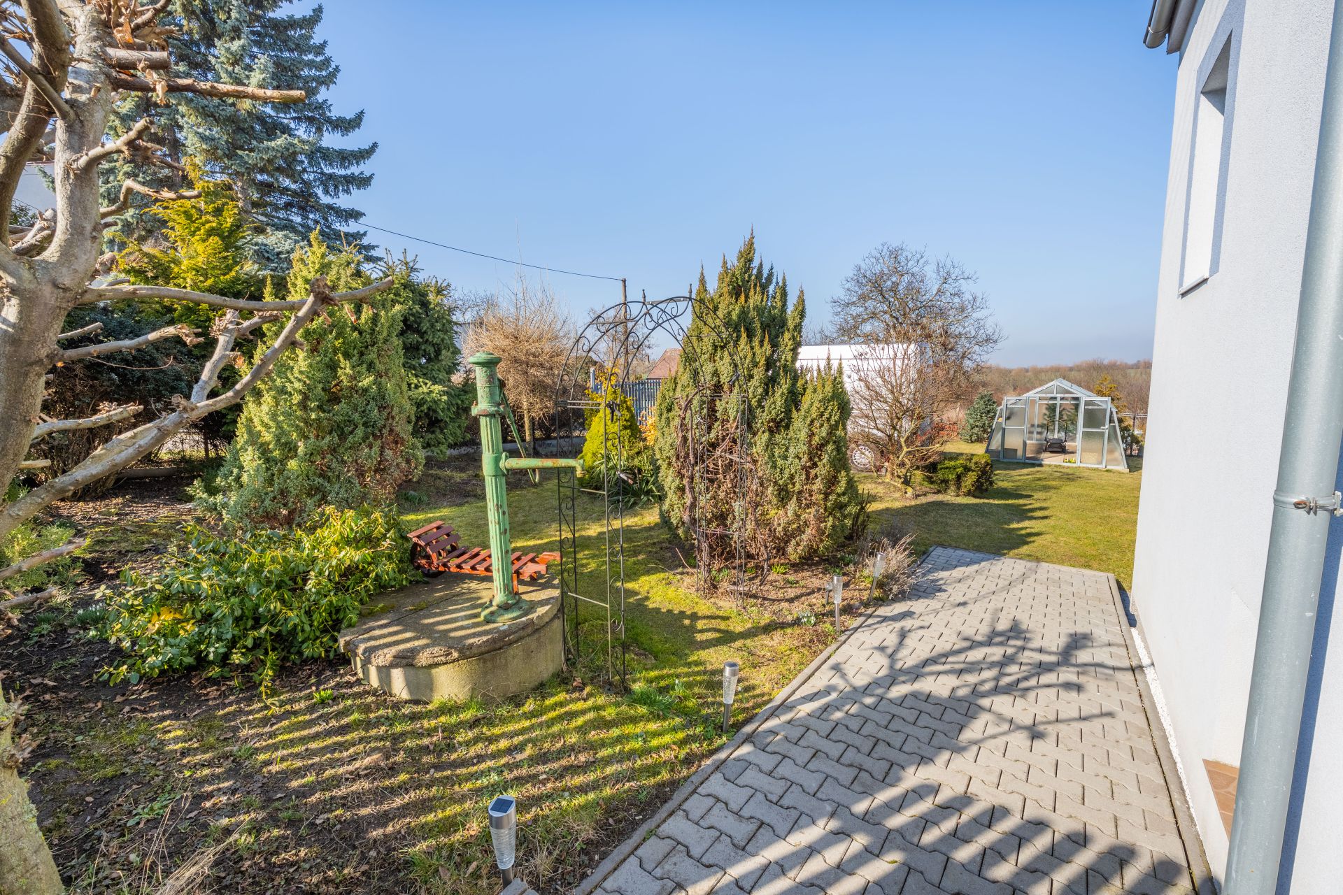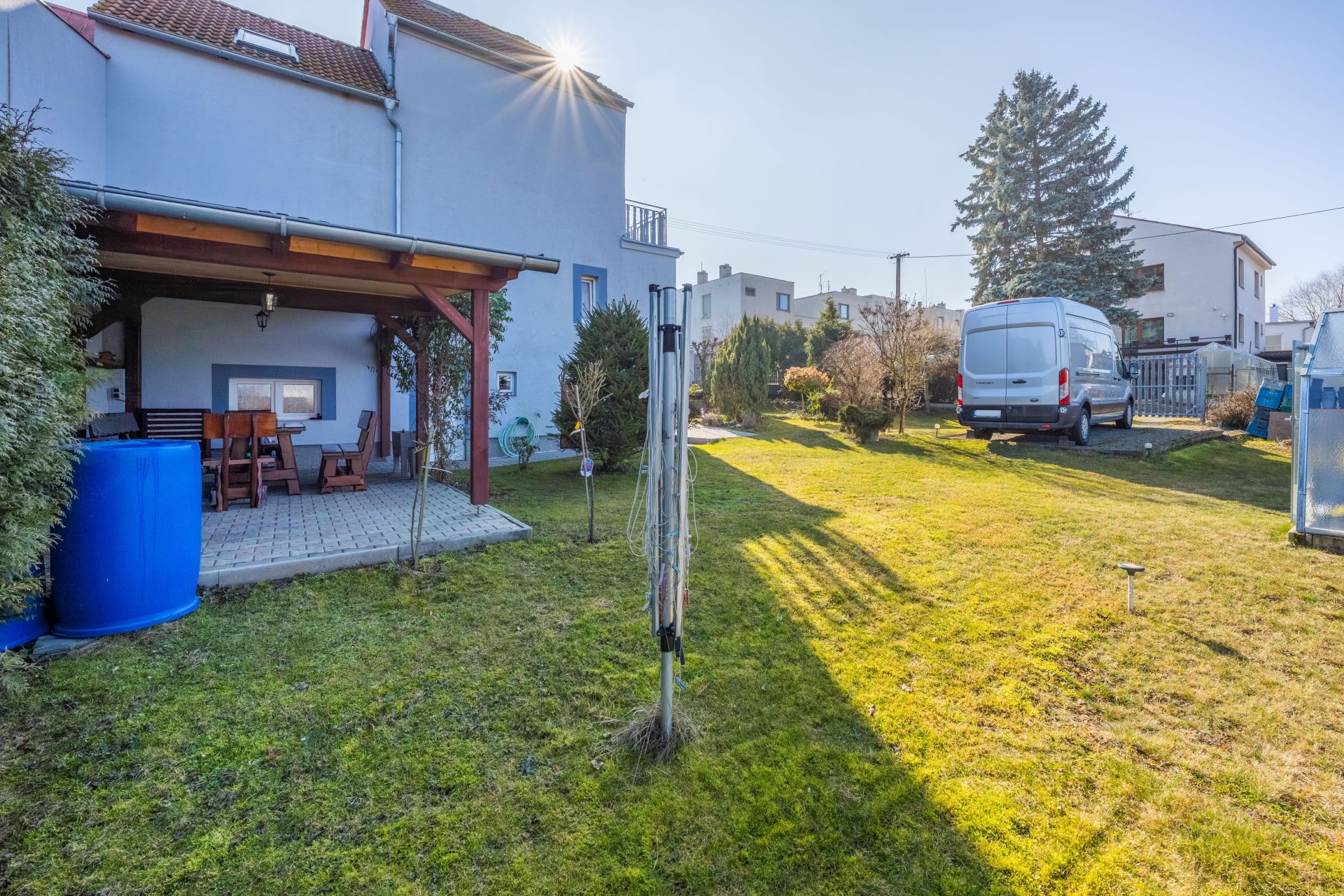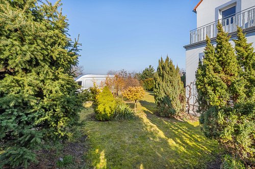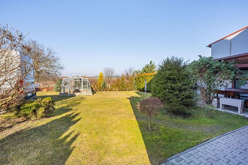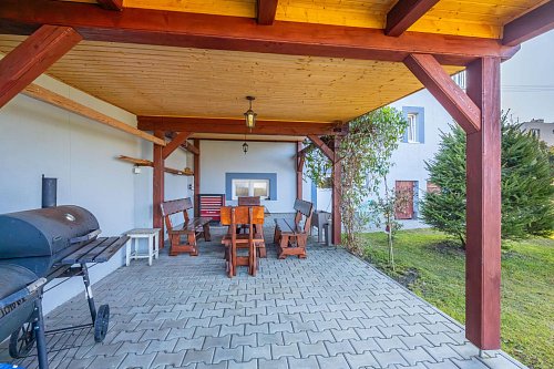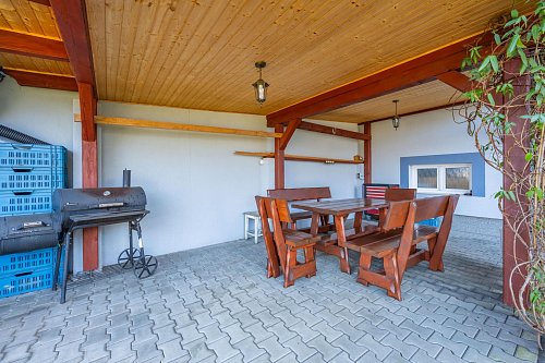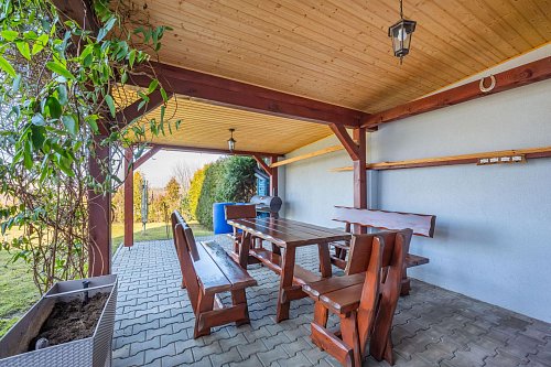 Zahrada umístěná za domem Vám poskytne příjemné soukromí a je zde i přístřešek s posezením pro setkání s přáteli, třeba i s grilováním.