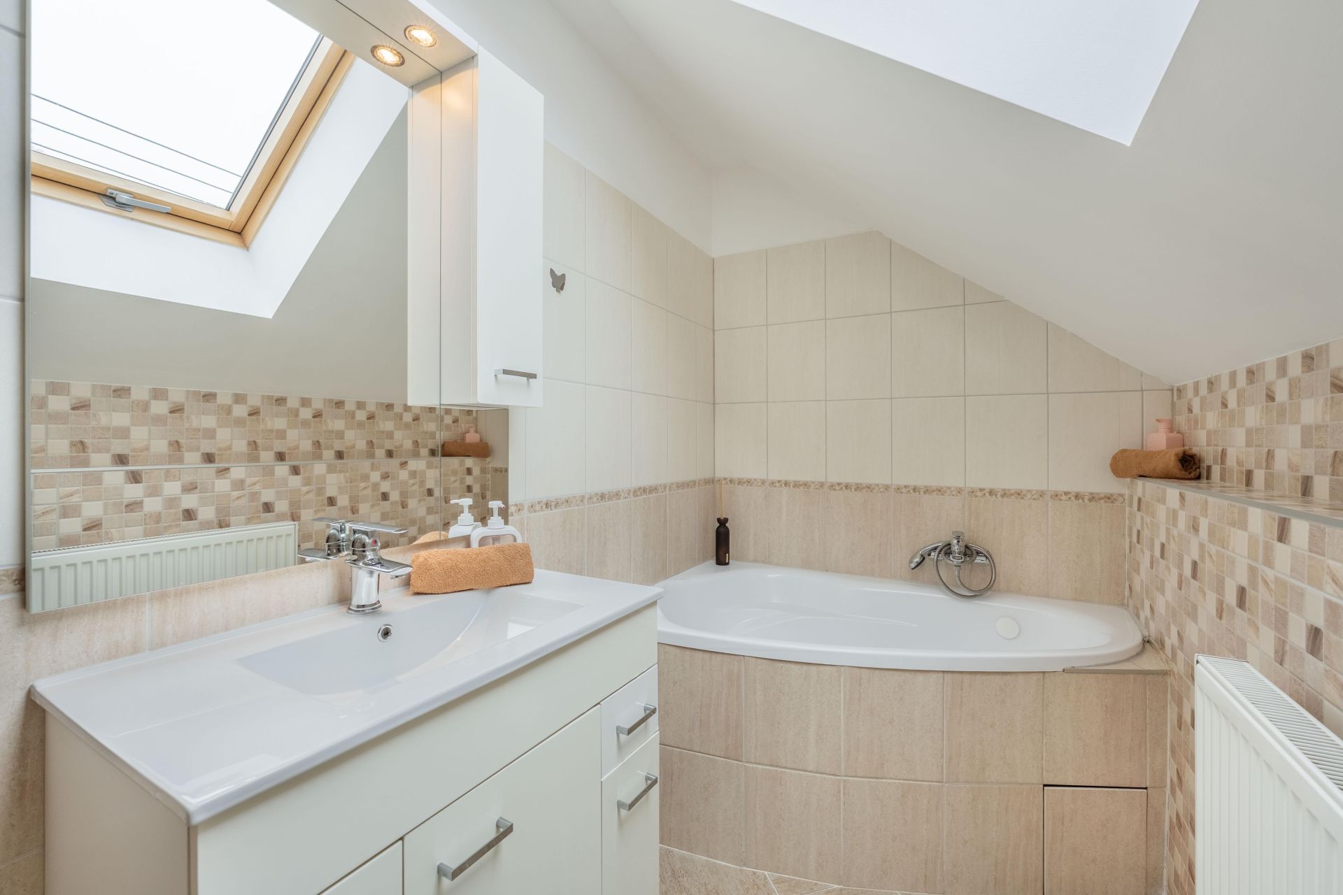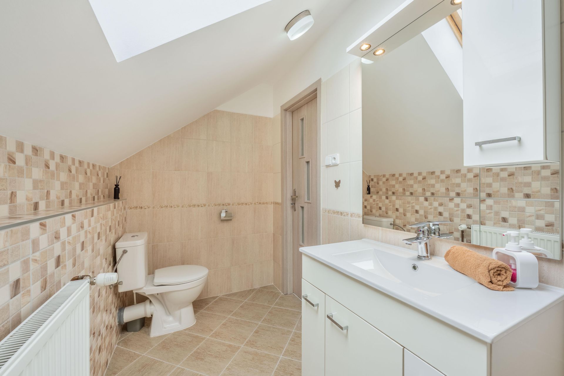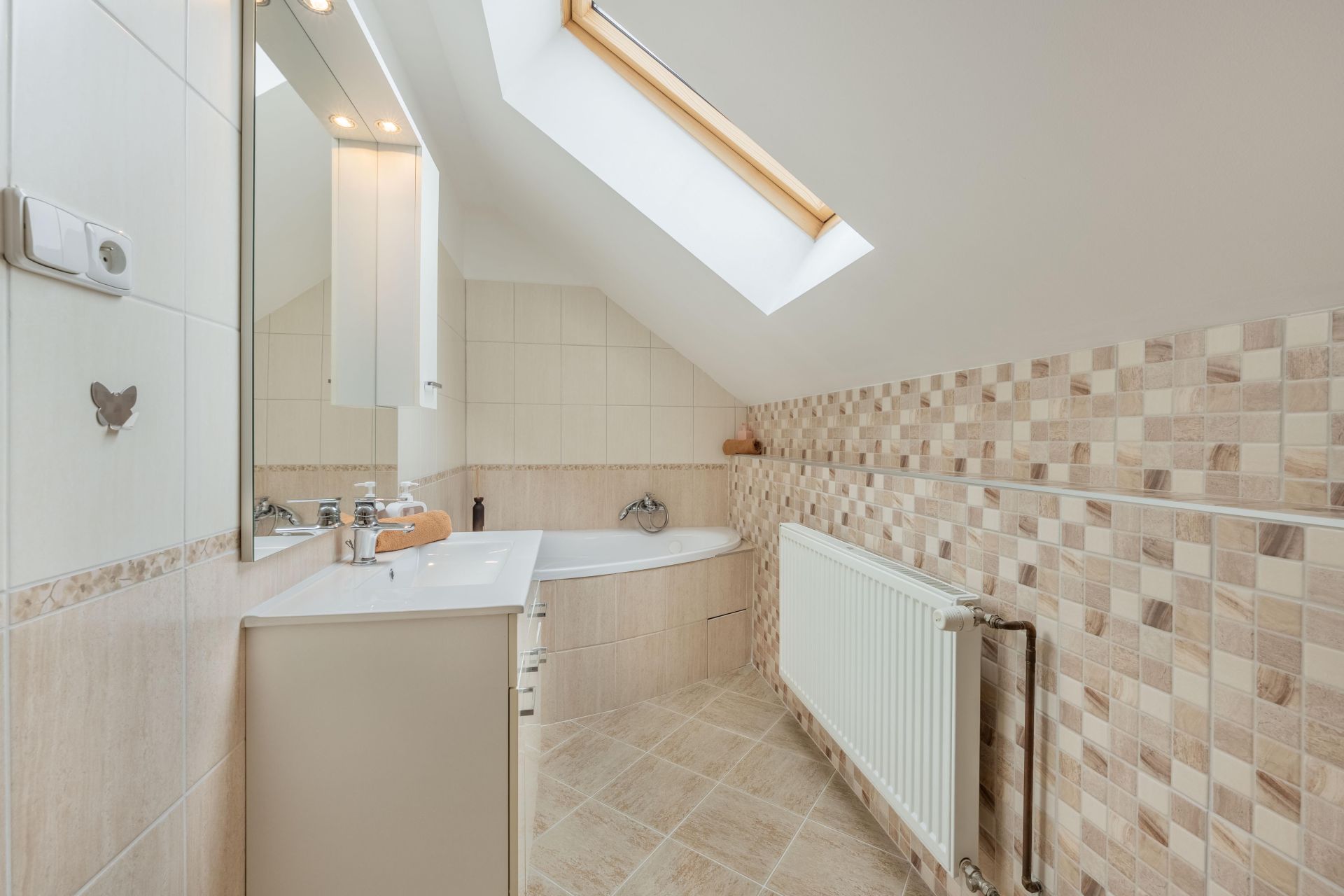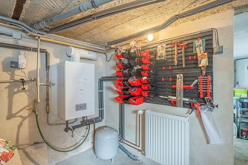 Dům je vybaven ústředním topením, s plynovým kondenzačním kotlem,